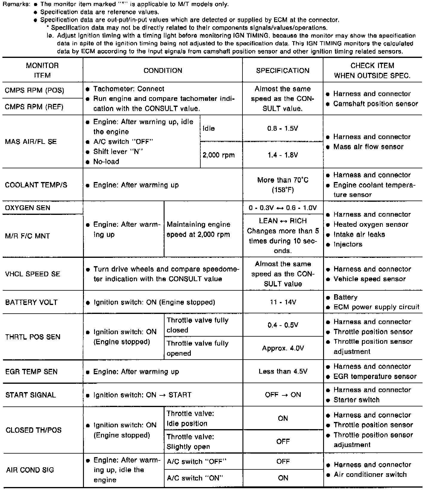 ^ Specification data are out-put/in-put values which are detected or supplied by Engine Control Module (ECM) at the connector.