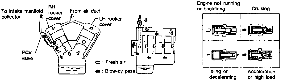 During part throttle opening, the manifold vacuum draws fresh air through the tube connected to the air cleaner, into the rocker cover and crankcase, drawing the blow-by gasses through the PCV valve into the intake air stream.