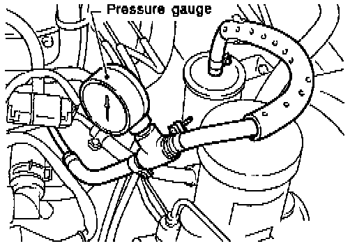 9. Start engine and read indication of fuel pressure gauge as vacuum is changed.