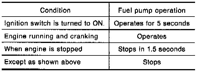 Refer to chart for fuel pump operation.