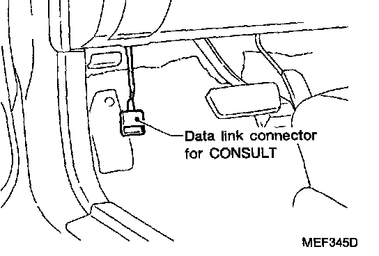 1. Connect "CONSULT" to data link connector for CONSULT. (Data link connector for CONSULT is located in the fuse box.)
