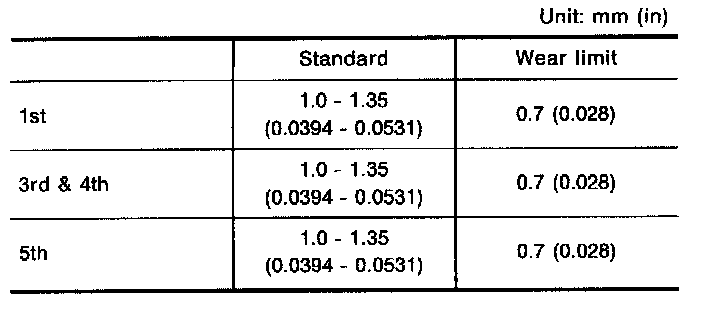 Clearance Between Baulk Ring And Gear - 1st, 3rd, 4th & 5th: