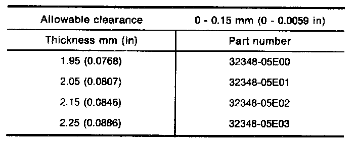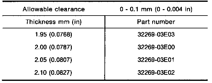 Table For Selecting Mainshaft Bearing Adjusting Shim (2 Of 2):