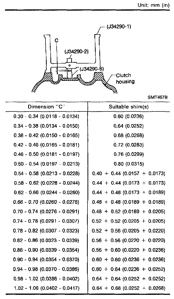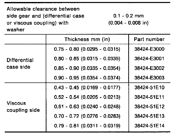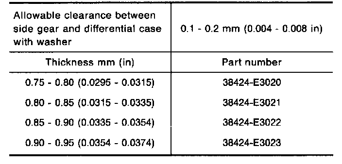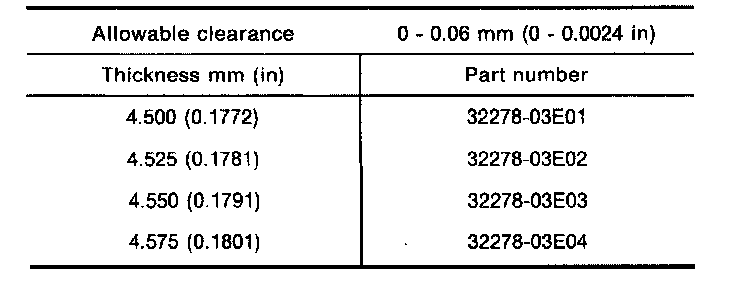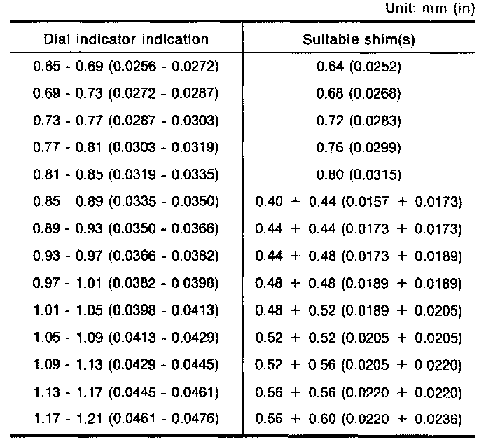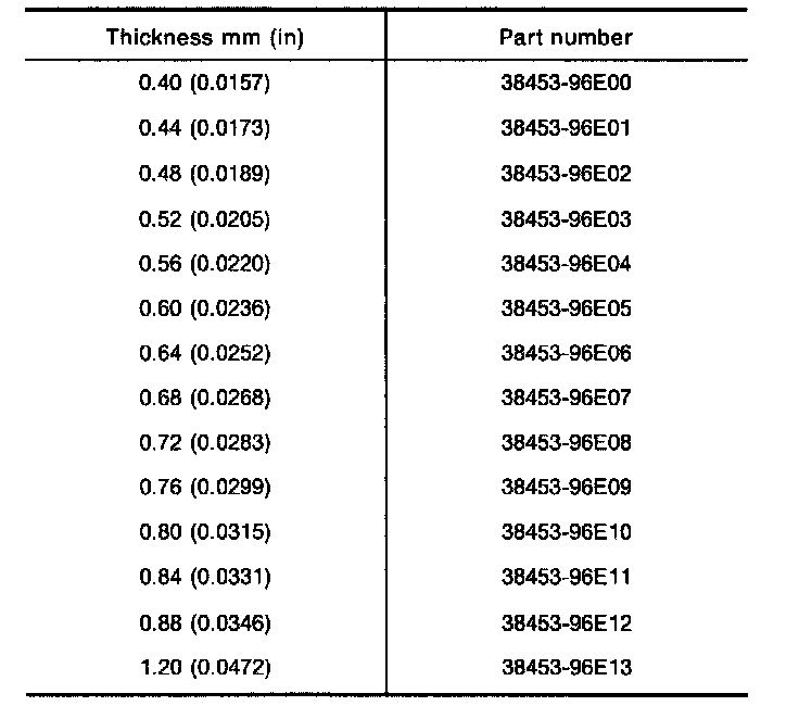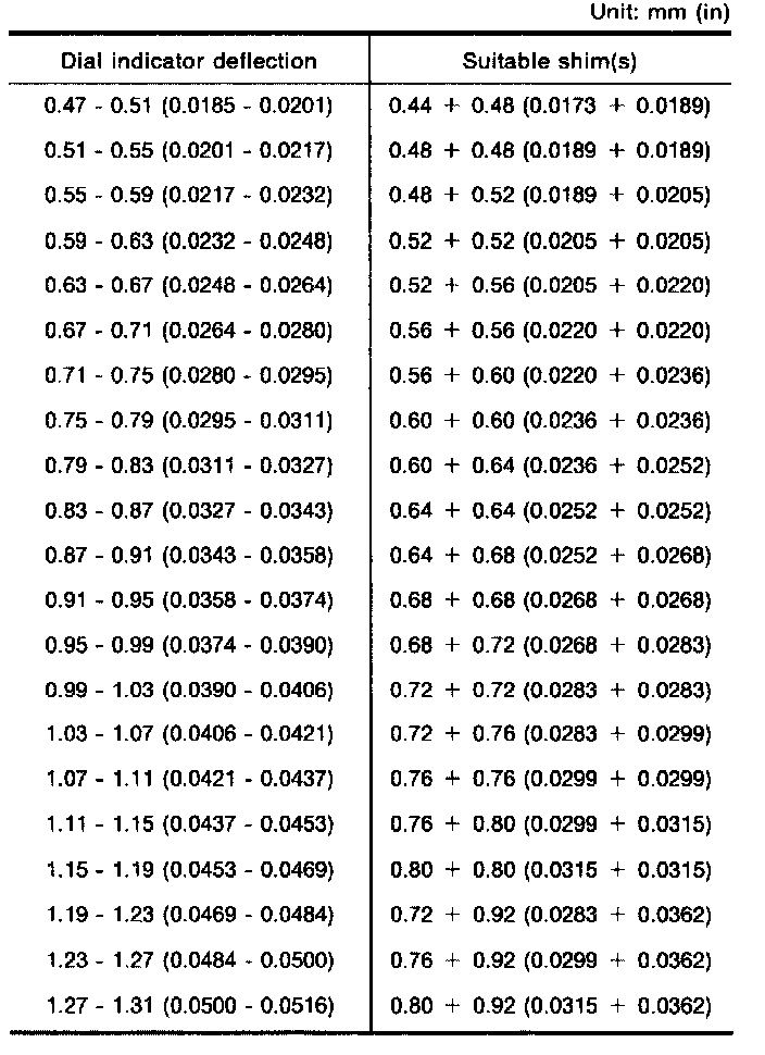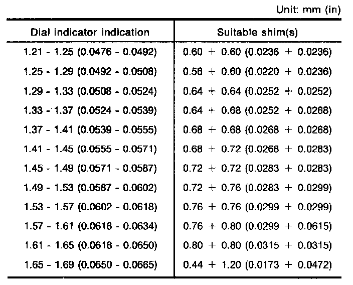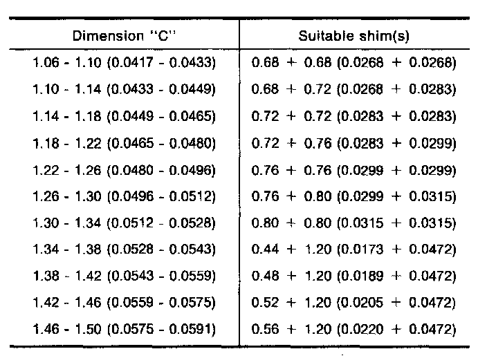 Table For Selecting Differential Side Bearing Adjusting Shims: