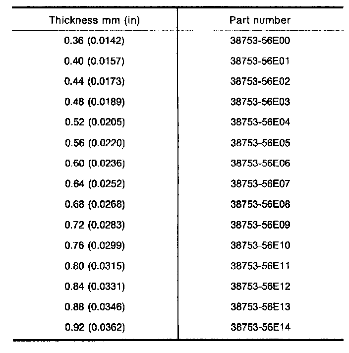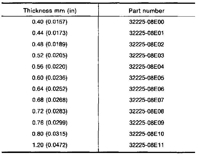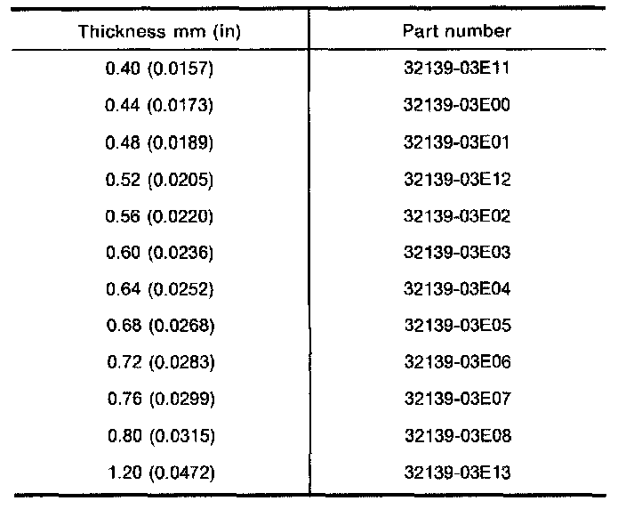 Available Adjusting Shim - Mainshaft Bearing:
