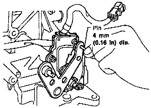 4. Insert pin into adjustment holes in both inhibitor switch and manual shaft as near vertical as possible.