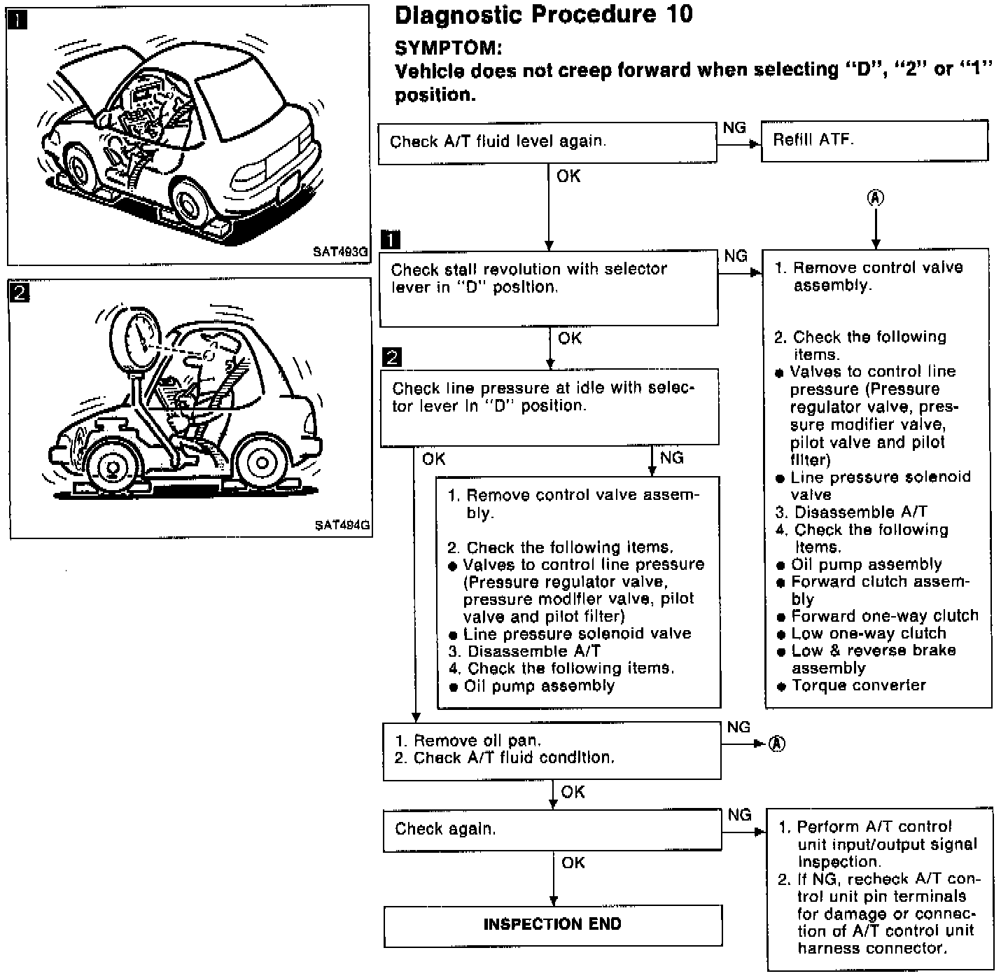 10 - Vehicle Does Not Creep Forward In D, 2, Or 1 Position: