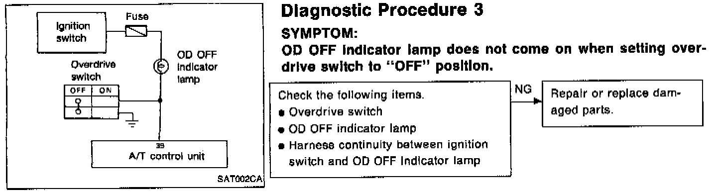 3 - OD Off Lamp Not ON With OD In OFF Position: