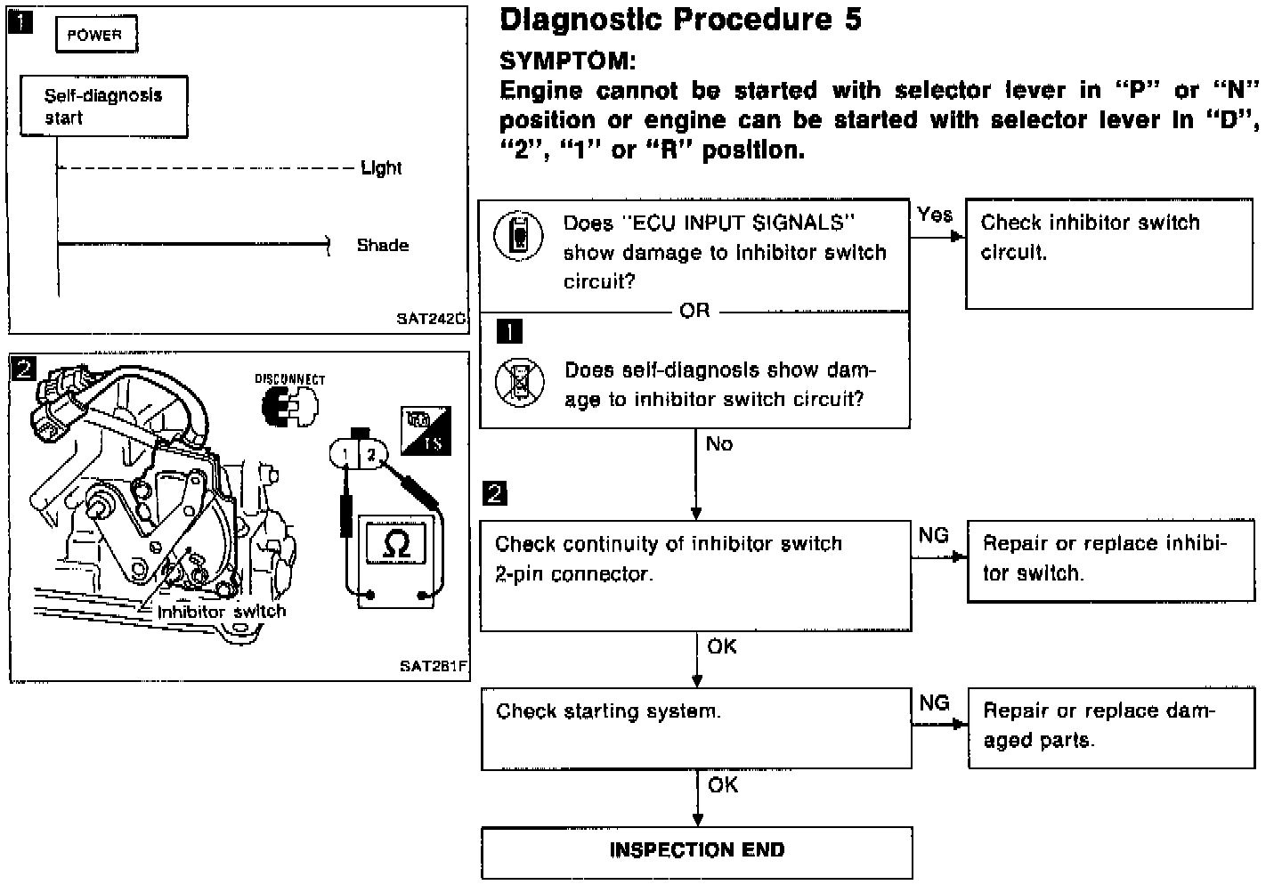 5 - No Start In P Or N Or Will Start In D, 2, 1 Or R Position: