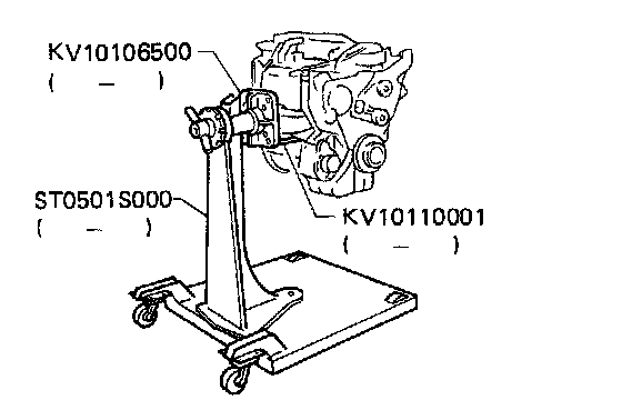 ^ In hoisting the engine, always use engine slingers in a safe manner.