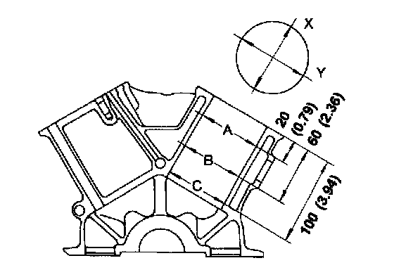 A + B = 0.2 mm (0.008 in) Nominal cylinder block height from crankshaft center: