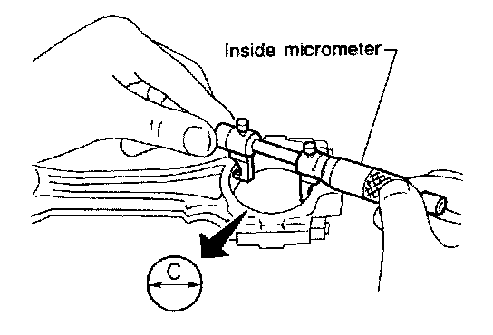 ^ When bearing clearance exceeds the specified limit, ensure that the proper bearing has been installed. Then if excessive bearing clearance exists, use a thicker main bearing or undersized bearing so that the specified bearing clearance is obtained.