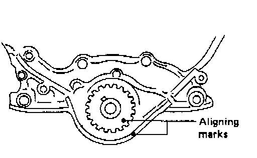 1. Set No. 1 piston at TDC on compression stroke as follows by aligning crankshaft sprocket alignment mark with oil pump body mark, Fig. 6, and confirm knock pin on camshaft is set at top.