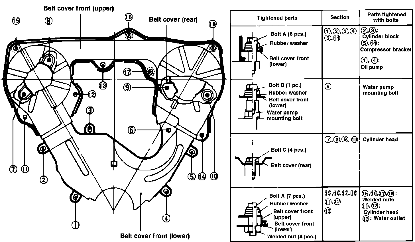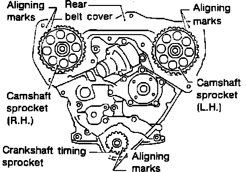 (1) Align white lines on timing belt with punch-marks on camshaft sprockets and crankshaft sprocket.