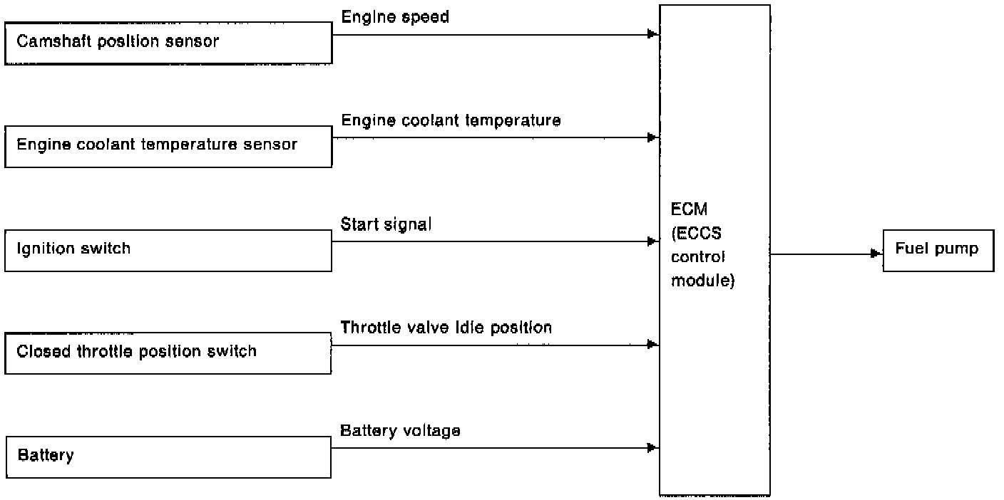The ECM will regulate Fuel Pump output based on engine sensor inputs. The Fuel Pump will receive a full 12 VDC when: