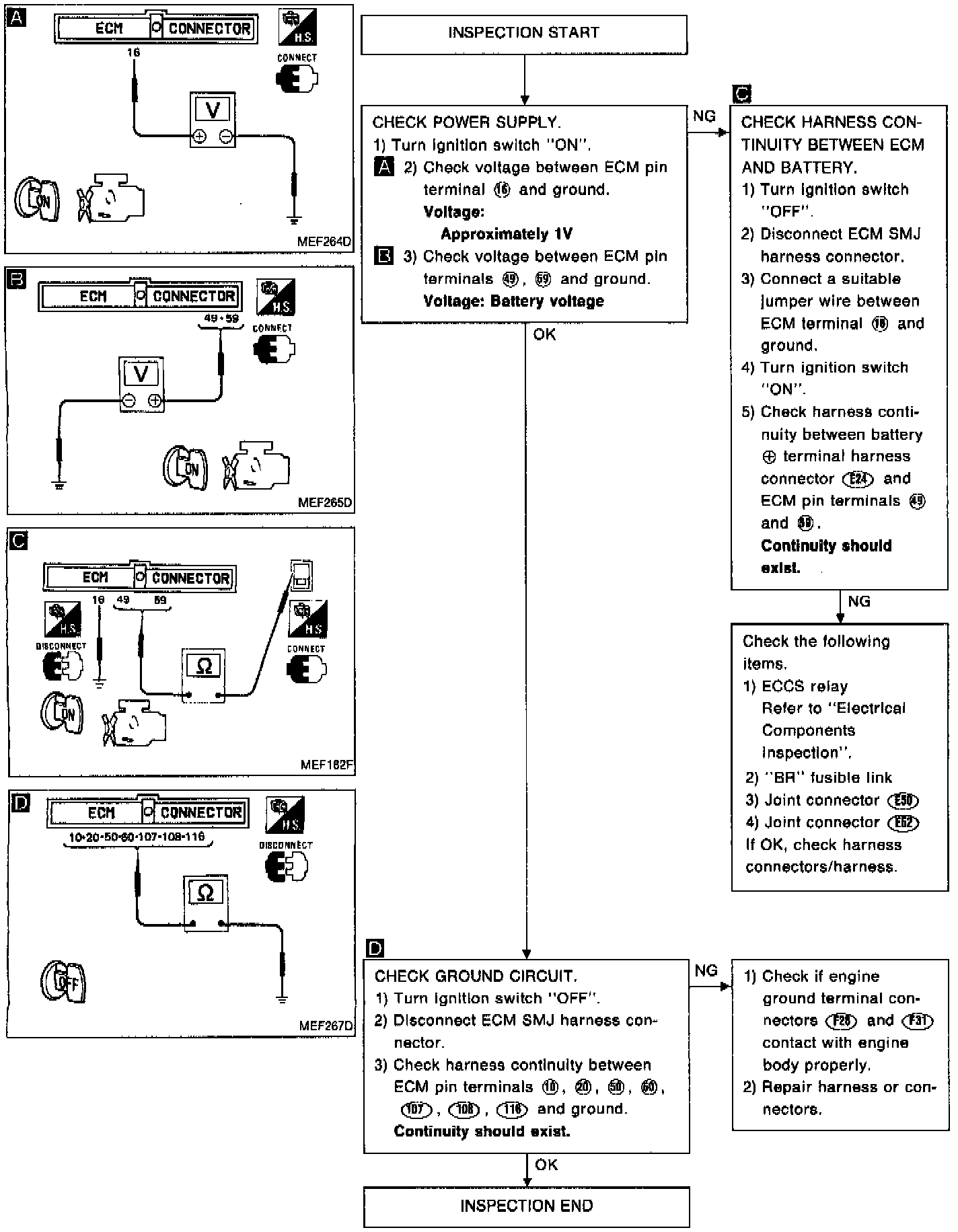ECU Main Power And Ground Circuit Diagnostic Chart:
