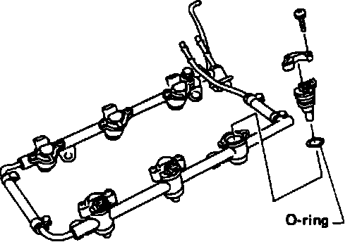 9. Remove injector securing bolts and remove injector from the fuel rail.