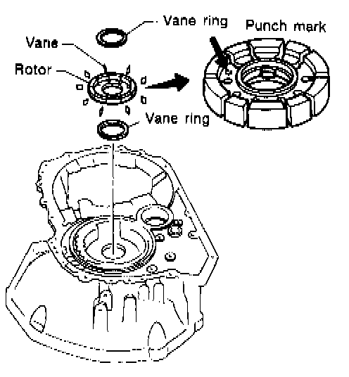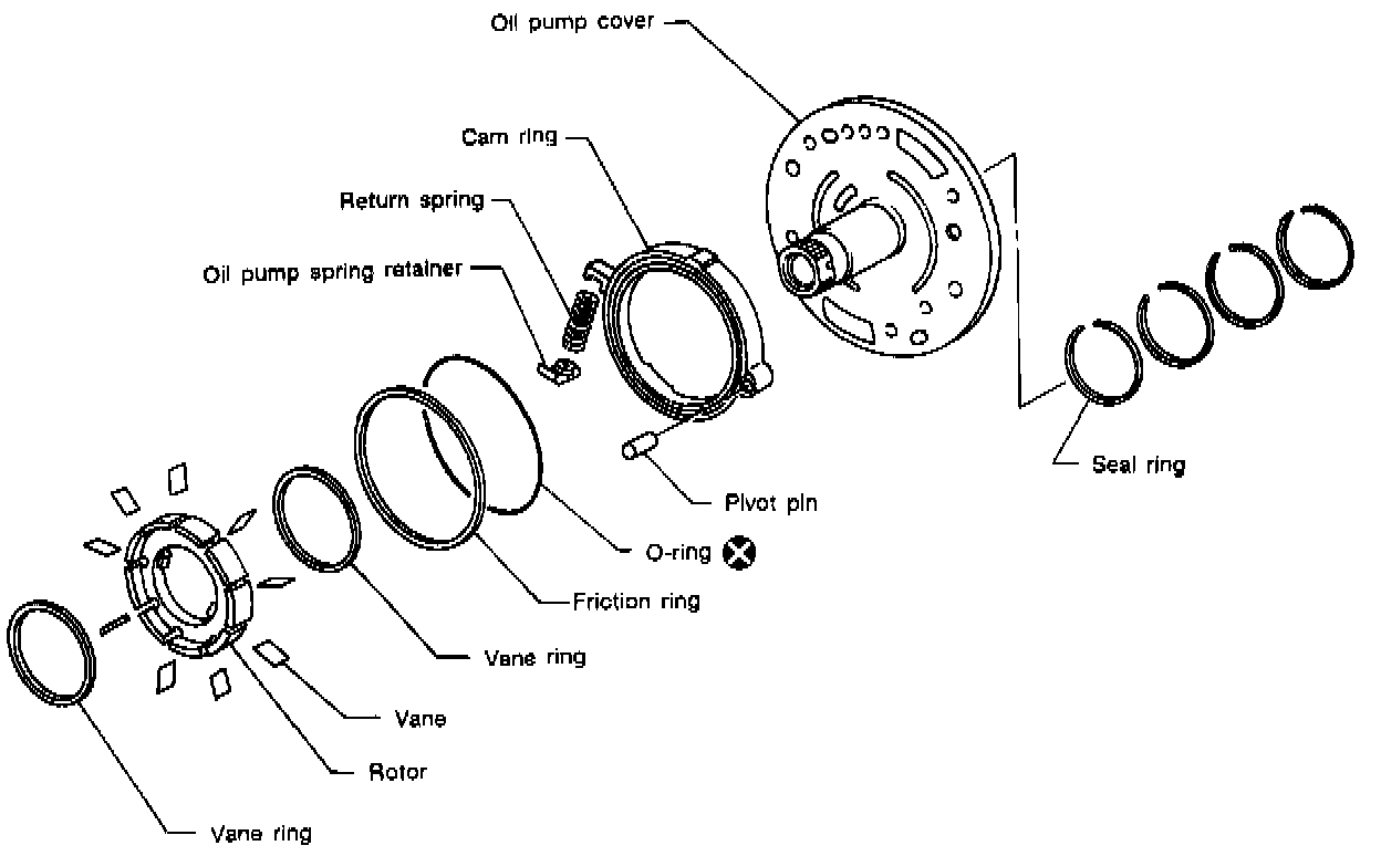 1. Inspect oil pump cover, cam ring. rotor and vanes for damage and visible wear