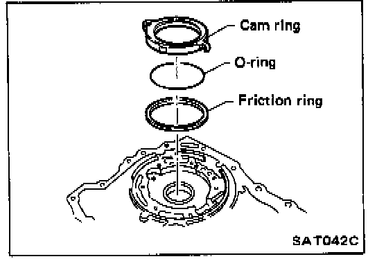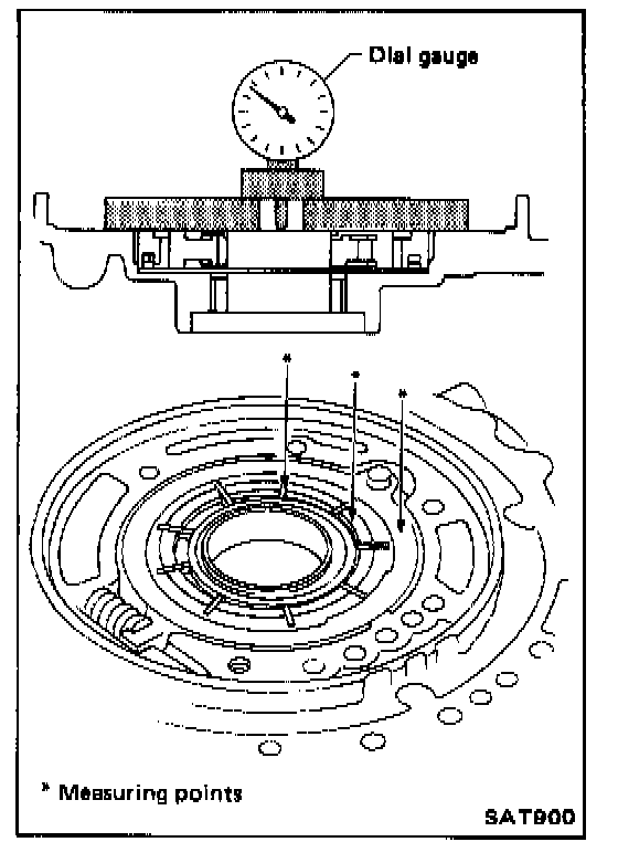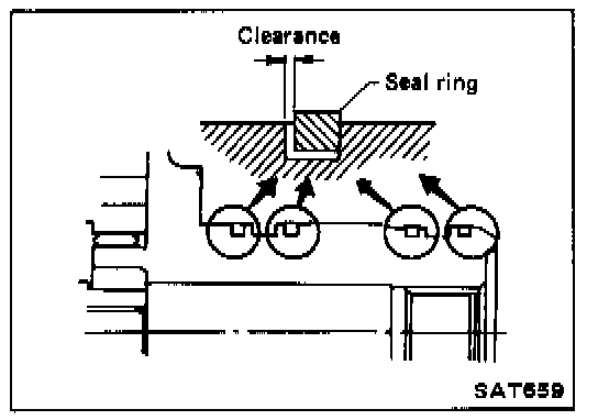 2. Measure clearance between clutch housing and cam ring. rotor and vanes in at least four places along their circumstances. The maximum measured value should be within the specified range.