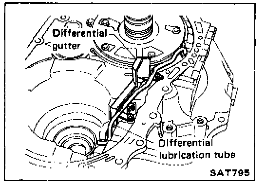 1. Install differential lubrication tube and differential gutter to converter housing.