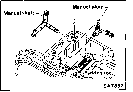4. Pass parking rod into the hole in the manual plate and then install manual plate on manual shaft.