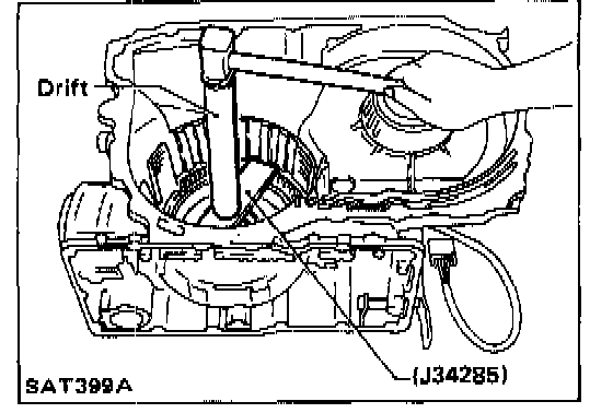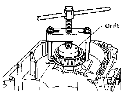 c. Put final drive assembly into converter housing, then put side bearing inner cone on differential case.