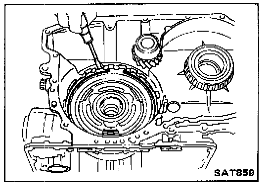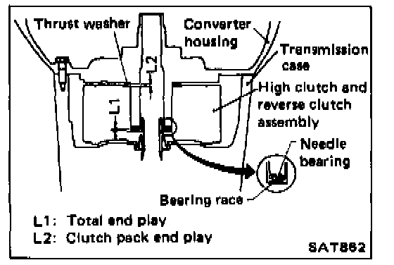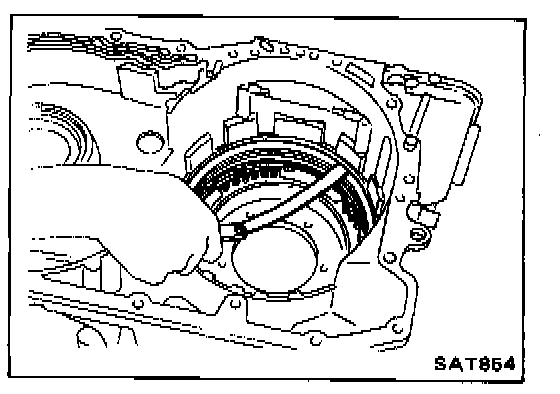 15. After low and reverse brake has been completely assembled, measure clearance between snap ring and retainer plate. If measurement exceeds specifications, it can be adjusted by replacing retainer plate with one of a different thickness.