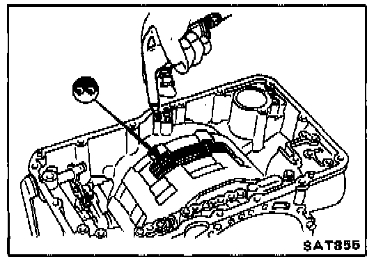 5. Install band brake servo, retainer and return spring and secure with snap ring.