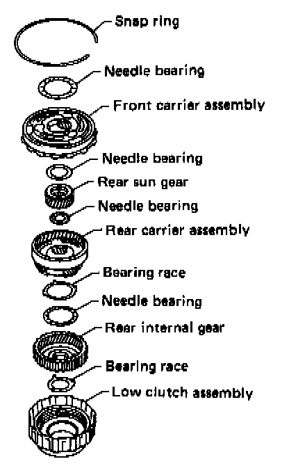a. Install seal rings onto bearing retainer with great care. Clean the grooves and liberally apply petroleum jelly to hold the rings in place. Otherwise, they could be cut or deformed when the low clutch and carrier assembly are installed.