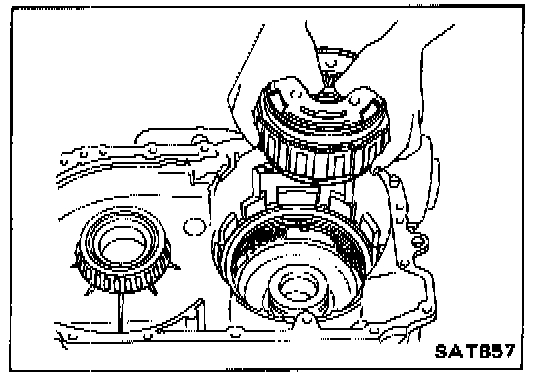 18. Install one-way clutch assembly while rotating front carrier with high clutch hub.