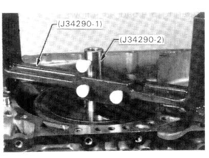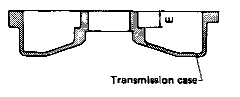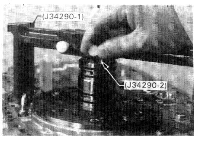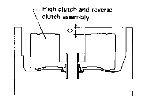 a. Place Tools (bridge and gauging cylinder) onto machined gasket surface of transmission case and allow cylinder to rest on high clutch drum. Lock cylinder into place.
