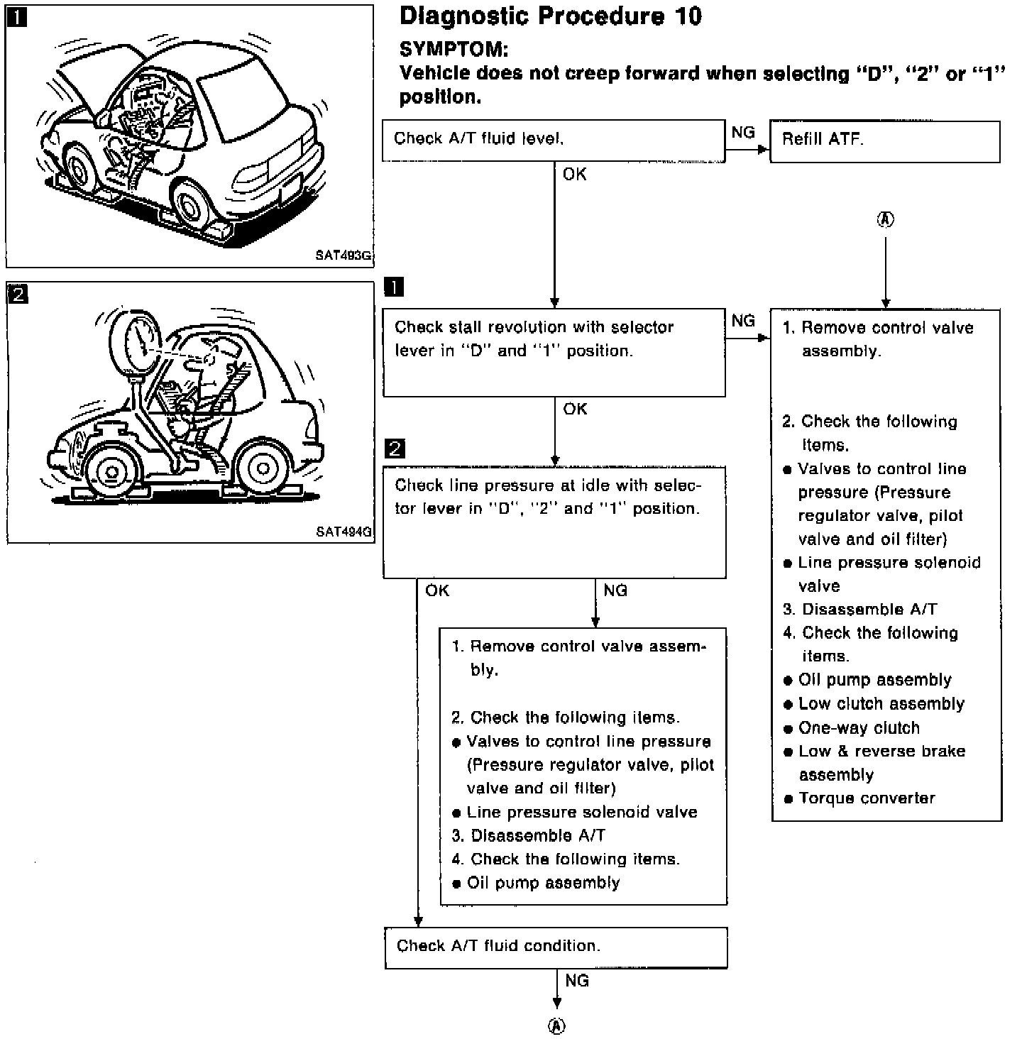 10 - Vehicle Does Not Creep Forward In D, 2, Or 1 Position: