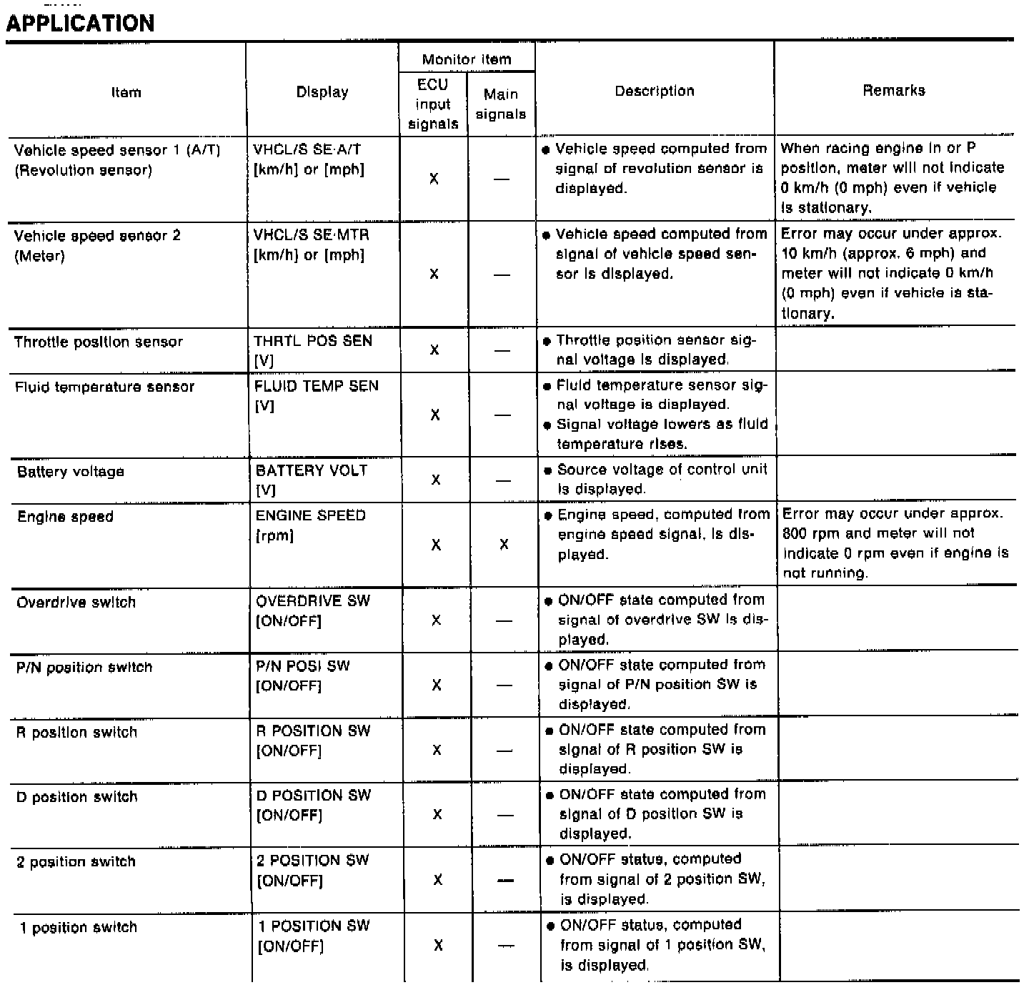 2. Shift schedule (which implies gear position) displayed on CONSULT and that indicated in Service Manual may differ slightly. This occurs because of the following reasons: