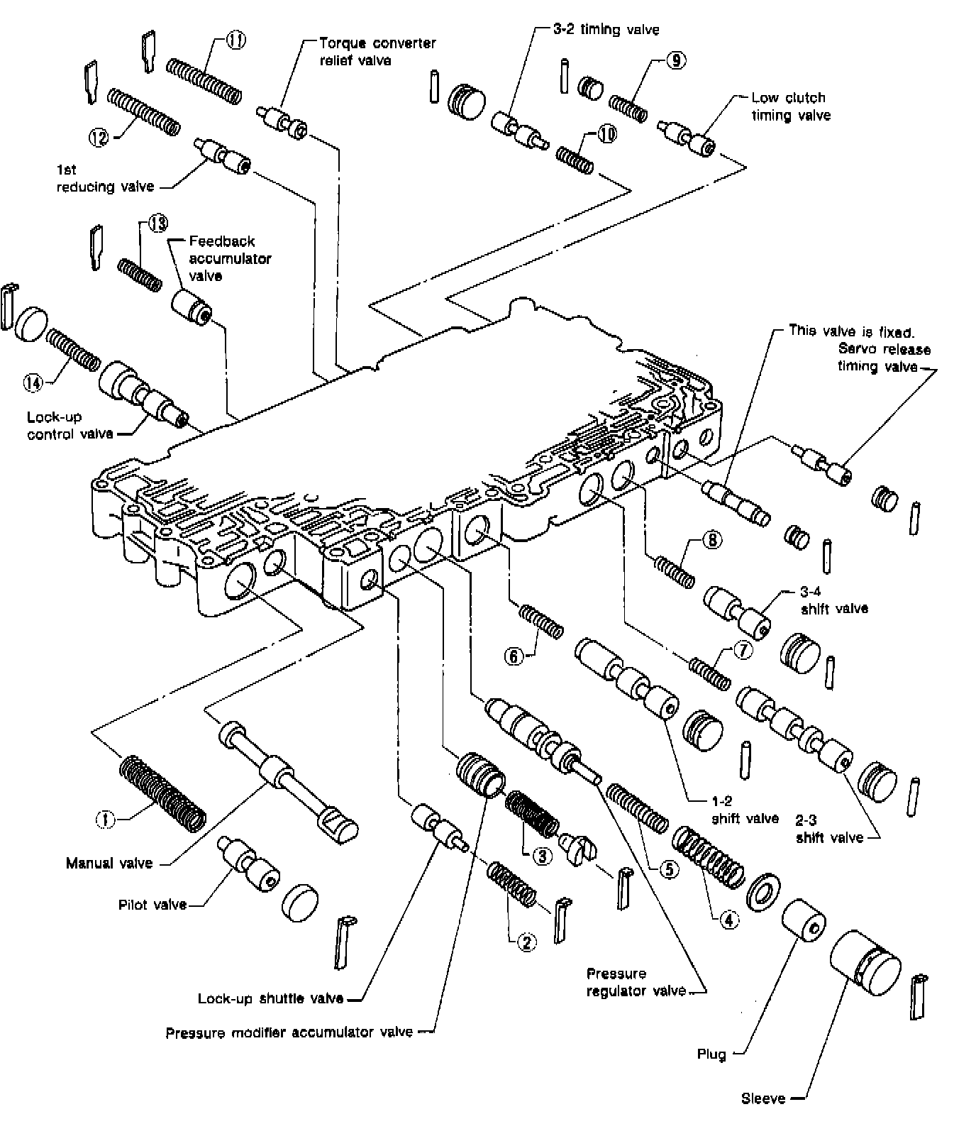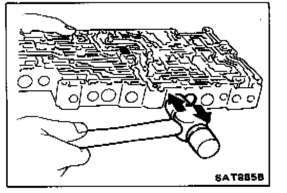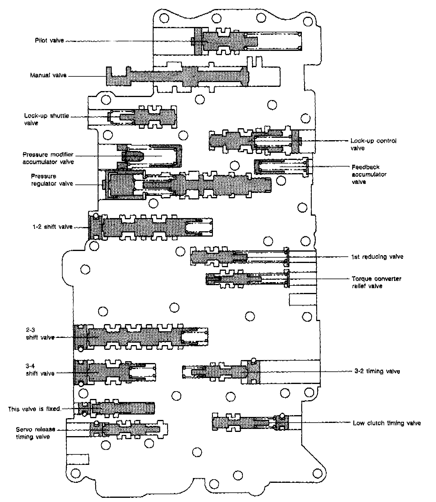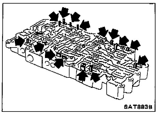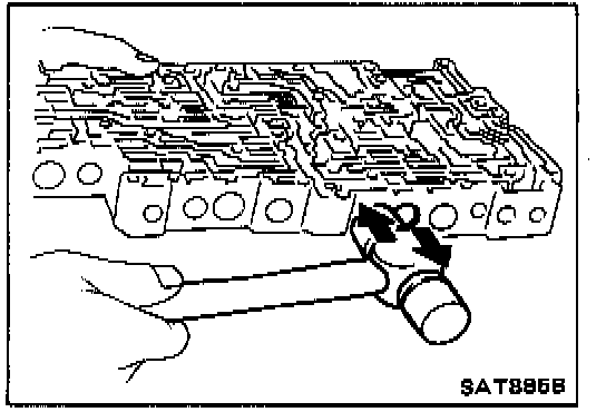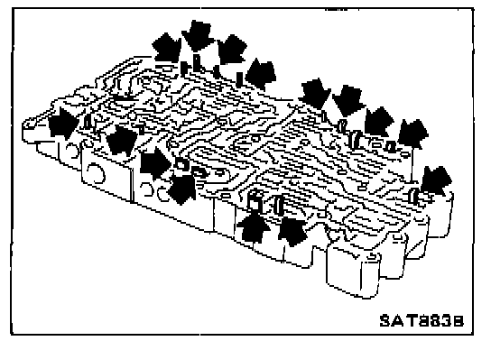 1. Lubricate the control valve body and all valves with A.T.F. Install control valves by sliding them carefully into their bores.