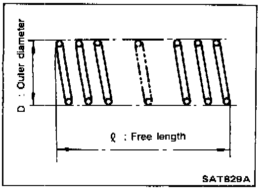 - Measure free length and outer diameter of each valve spring. Also check for damage or deformation.