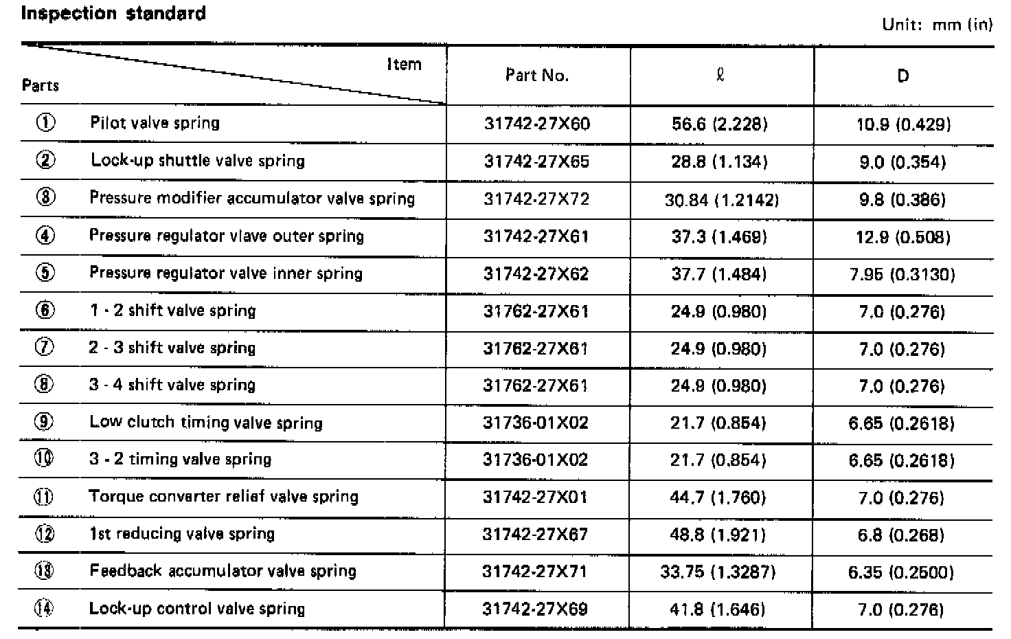 - Numbers of each valve spring listed in table below are the same as those in the figure at the top of this article.