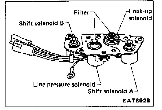 - Check that filter is not clogged or damaged (line pressure solenoid and lock-up solenoid).