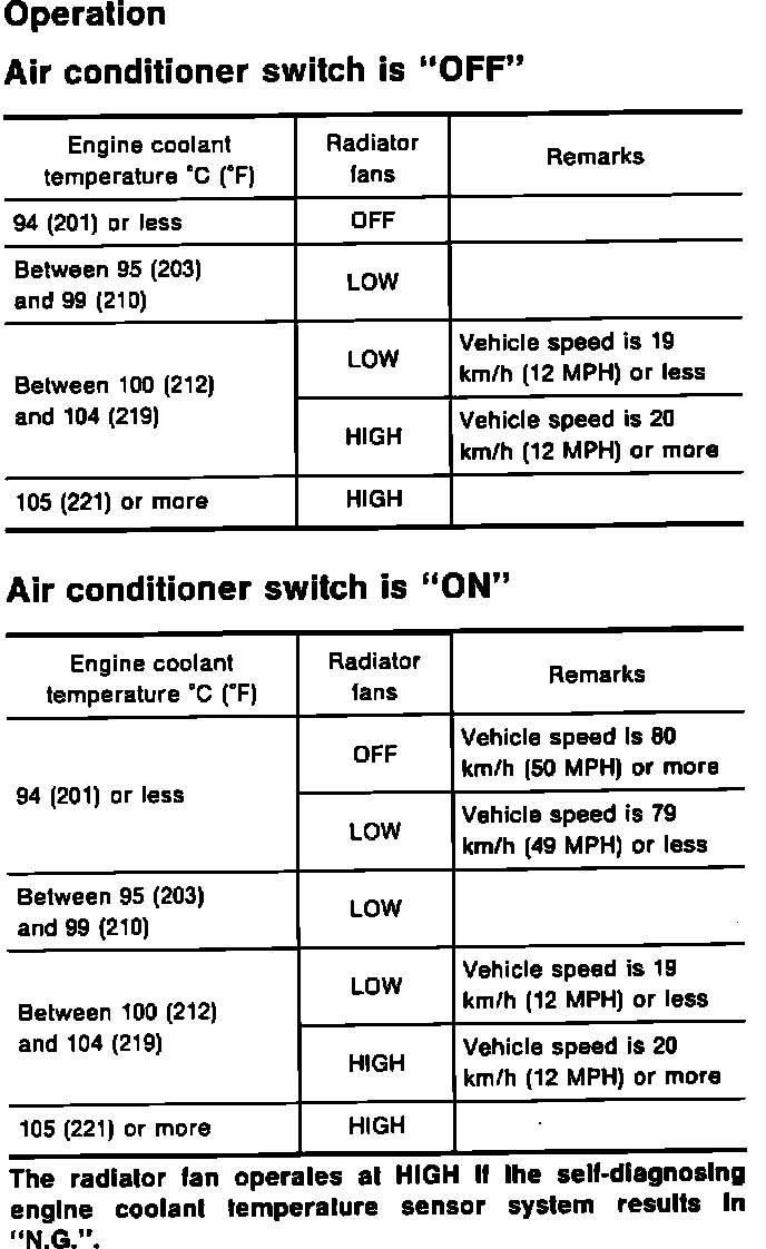 Radiator Fan Control Chart: