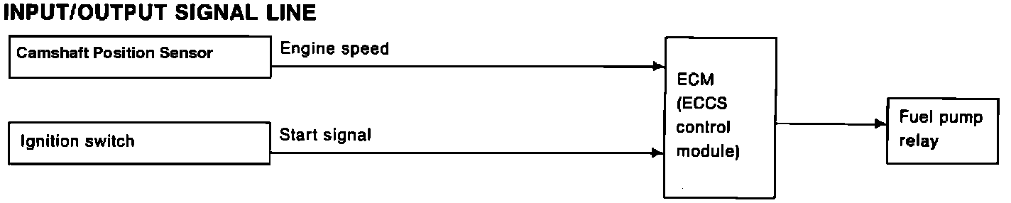 The Engine Control Module (ECM) supplies the ground circuit for the fuel pump relay for five seconds after the ignition switch is turned on. If the ECM receives a 180° signal from the Camshaft Position Sensor, it knows that the engine is rotating, and causes the pump to run.