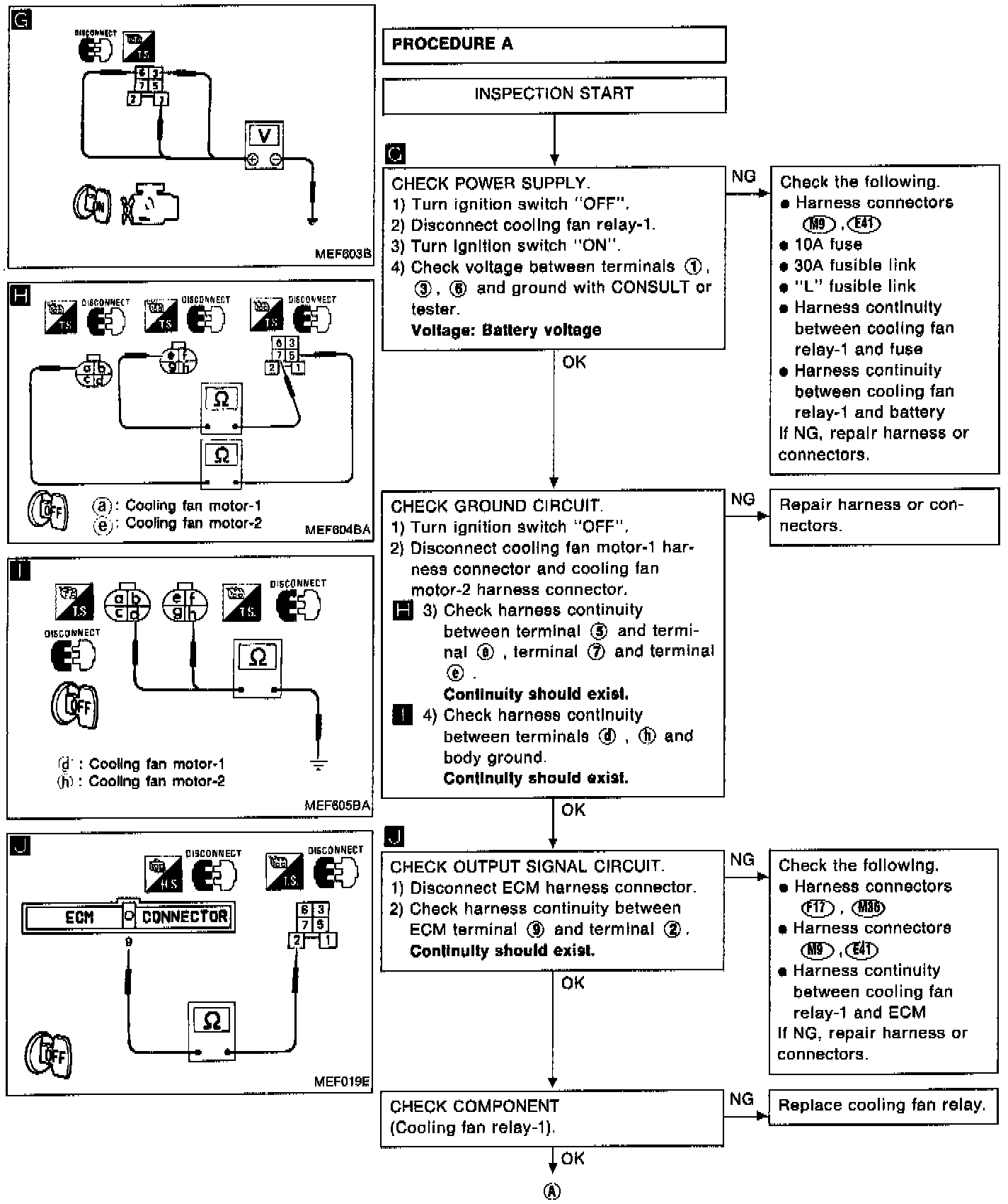 Cooling Fan Control Circuit Diagnostic Chart - PROCEDURE A:
