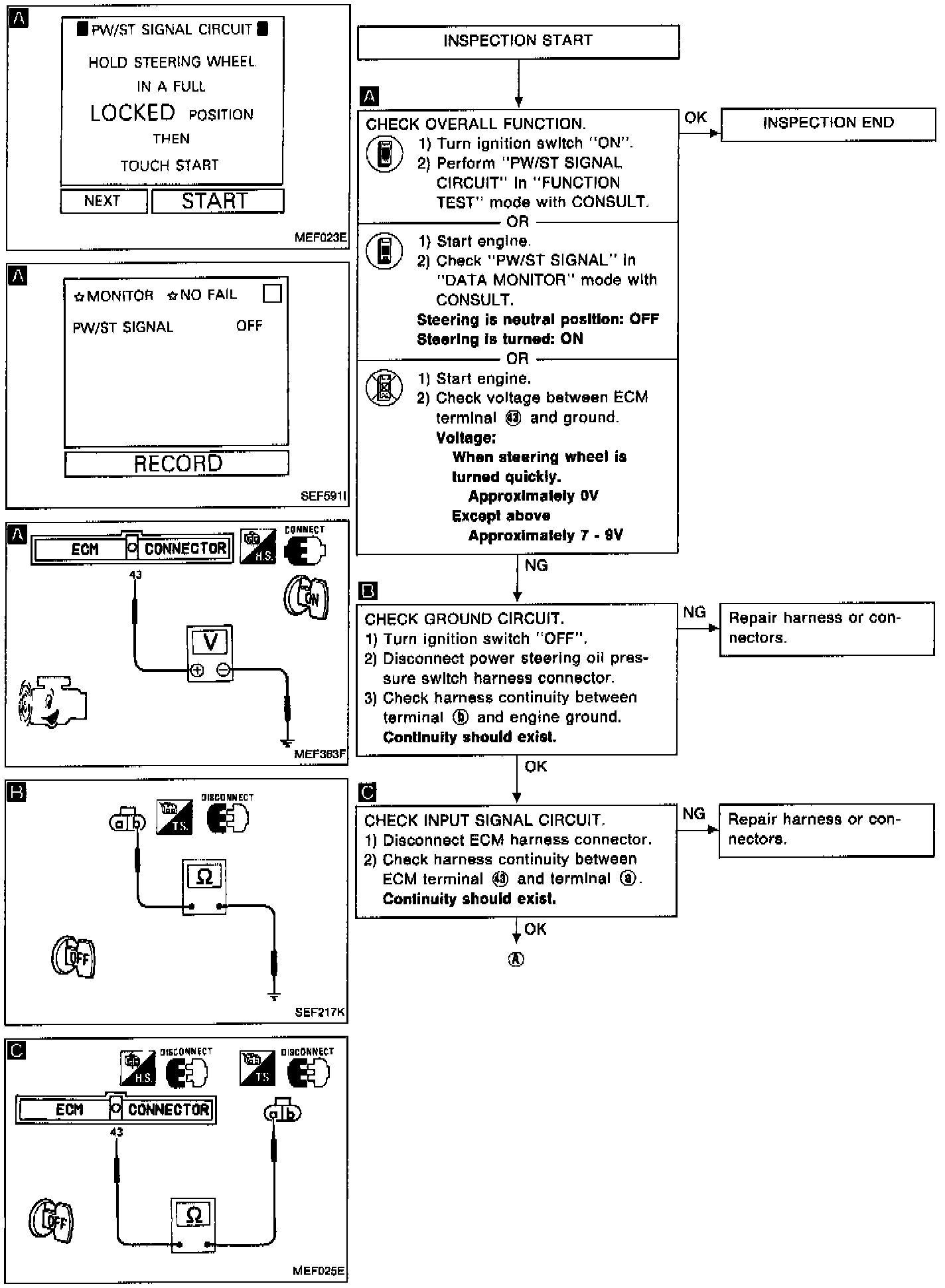 Power Steering Switch Circuit Diagnostic Chart: