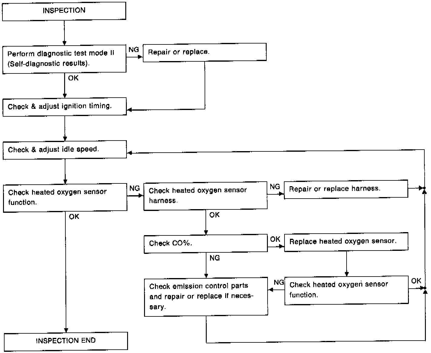 3. On automatic transaxle equipped models, when checking idle speed, ignition timing and mixture ratio, checks should be carried out while shift lever is in "N" position.
