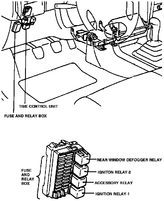 In Fuse & Relay Box, behind lower left-hand side of the instrument panel.
