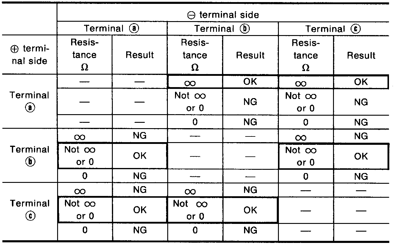Using a digital ohmmeter, check for continuity between terminals as shown.