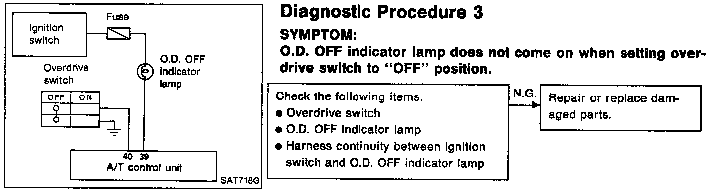 3 - OD Off Lamp Not ON With OD In OFF Position: