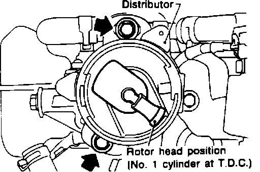 2. Install the distributor, making sure the rotor is aligned as shown when fully seated.