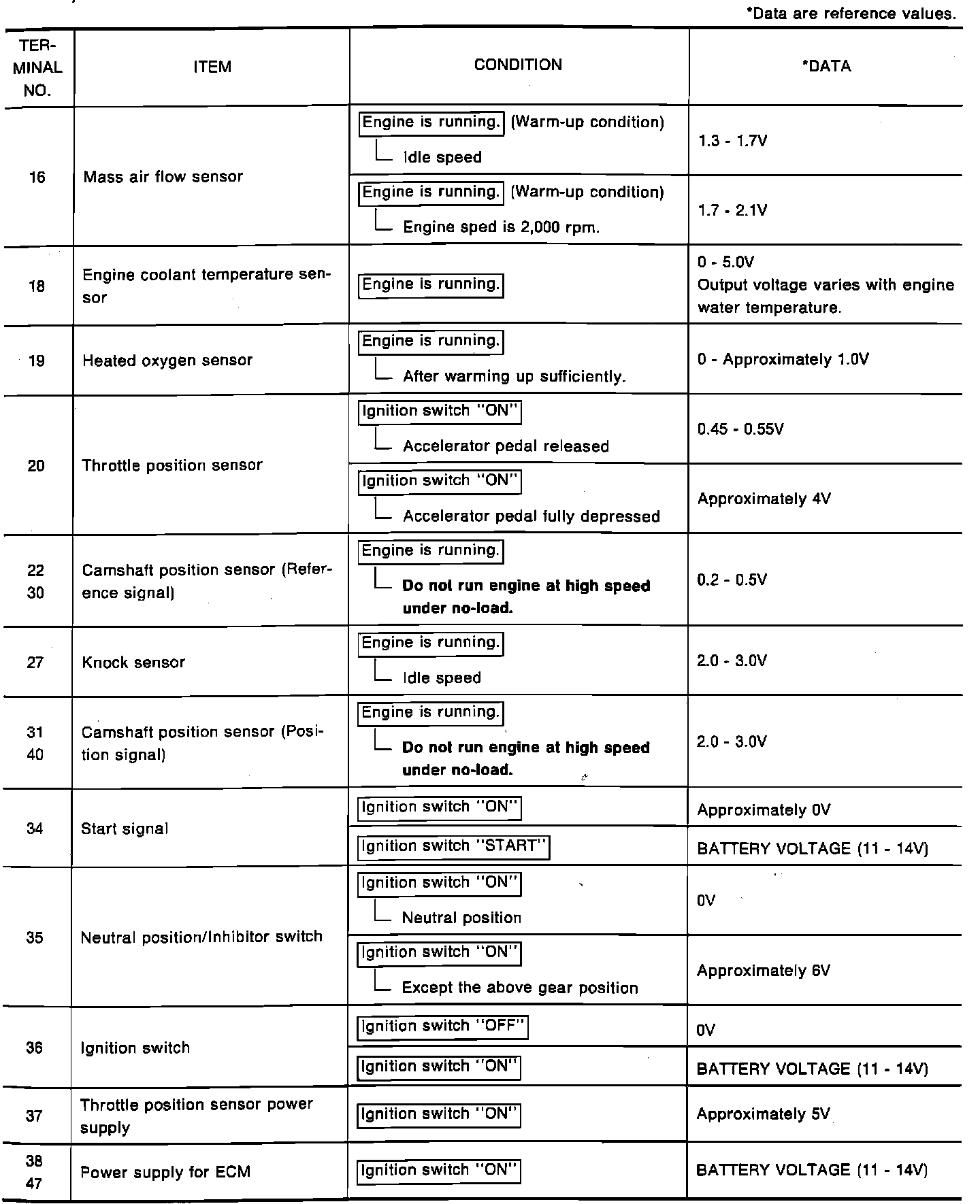 NOTE: Testing of circuit voltages can be done at the Engine Control Module (ECM) connector by CAREFULLY backprobing the connector. Use a high-quality digital DVOM.