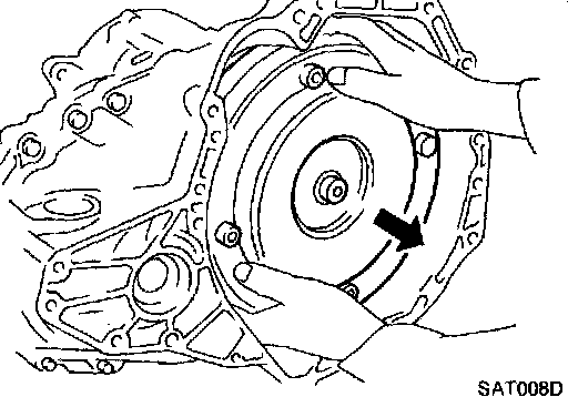 c. Check inner race rotates clockwise only. If not, replace torque converter assembly.