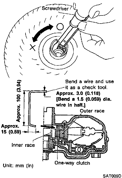 a. Insert check tool into the groove of bearing support built into one-way clutch outer race.