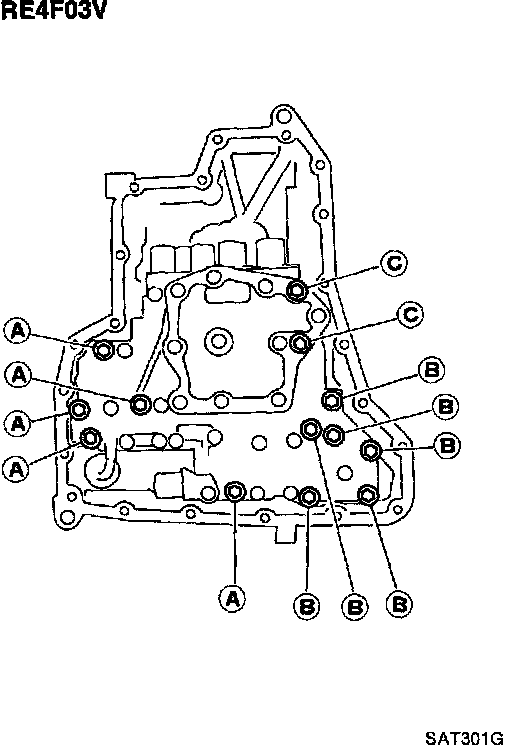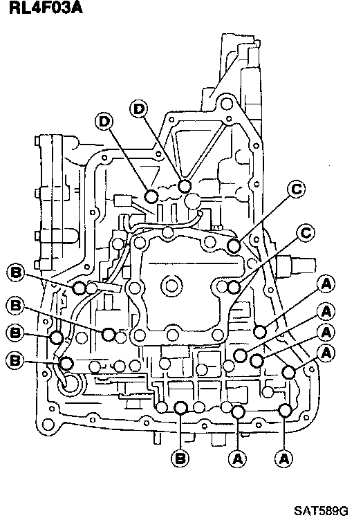 DISASSEMBLY PART 1 - RL4F03A & RE4F03V1. Drain ATF through drain plug.